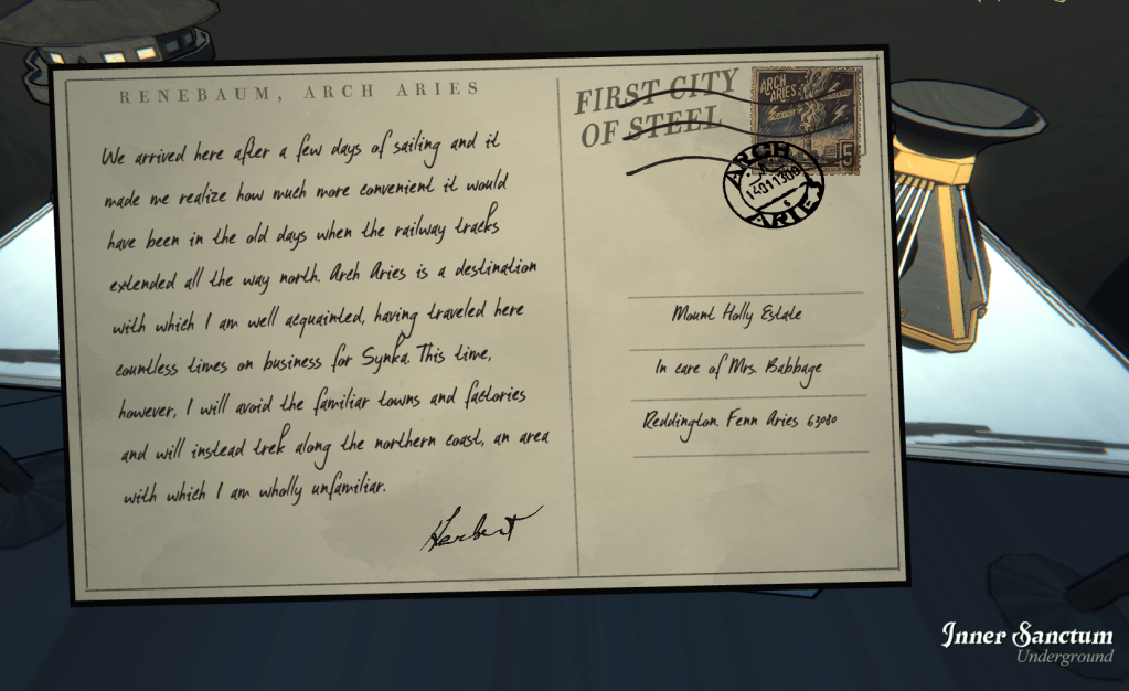 We arrived here after a few days of sailing and it made me realize how much more convenient it would have been in the old days when the railway tracks extended all the way north. Arch Aries is a destination with which I am well acquainted, having traveled here countless times on business for Synka. This time, however, I will avoid the familiar towns and factories and will instead trek along the northern coast, an area with which I am wholly unfamiliar.
