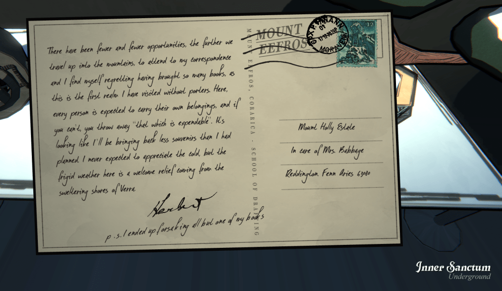 There have been fewer and fewer opportunities, the further we travel up into the mountains, to attend to my correspondence and I find myself regretting having brought so many books, as this is the first realm I have visited without porters. Here, every person is expected to carry their own belongings, and if you can’t, you throw away “that which is expendable”. It’s looking like I’ll be bringing back less souvenirs than I had planned. I never expected to appreciate the cold, but the frigid weather here is a welcome relief coming from the sweltering shores of Verra.