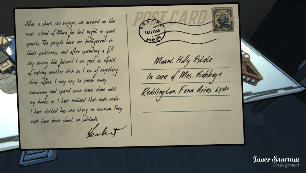 After a short sea voyage, we arrived on the main island of Mora Jai last night in good spirits. The people here are belligerent in their politeness and after spending a full day among the Jaioreil I am just as afraid of eating another dish as I am of rejecting their offers. I may try to sneak away tomorrow and spend some time alone with my books as I have noticed that each realm I have visited has one thing in common. They each have been short on solitude.