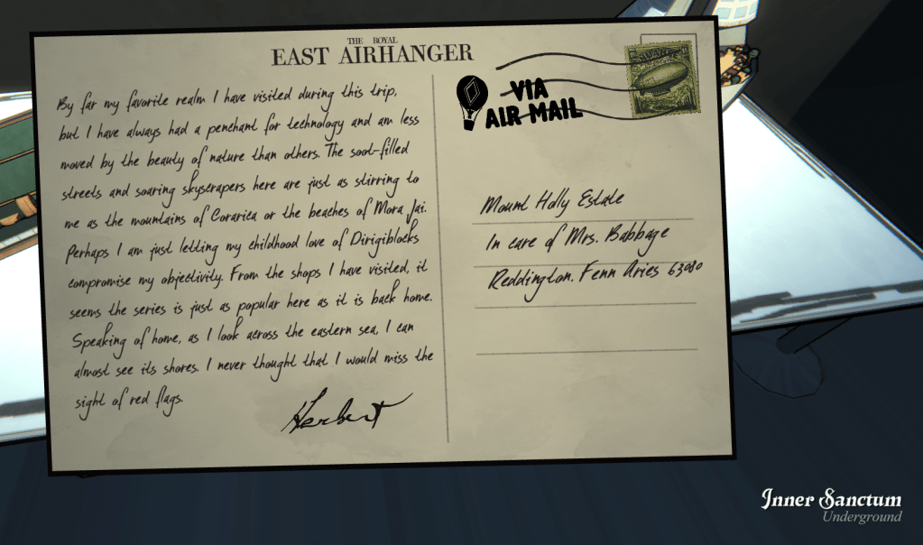 By far my favorite realm I have visited during this trip, but I have always had a penchant for technology and am less moved by the beauty of nature than others. The soot-filled streets and soaring skyscrapers here are just as stirring to me as the mountains of Coraria or the beaches of Mora Jai. Perhaps I am just letting my childhood love of Dirigiblocks compromise my objectivity. From the shops I have visited, it seems the series is just as popular here as it is back home.