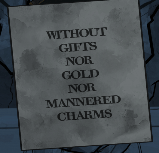 5. WITHOUT GIFTS NOR GOLD NOR MANNERED CHARMS