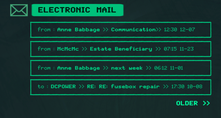 Yes, and don’t worry – this communication method is fully secure. I am the only lab technician with network access and the only one who uses this terminal. I’m working to get you some more supplies, but I’m not focusing on essentials as I believe there’s enough food in the shelter to last for the duration. Though I think it’d be wise if you can do a quick inventory to confirm that.