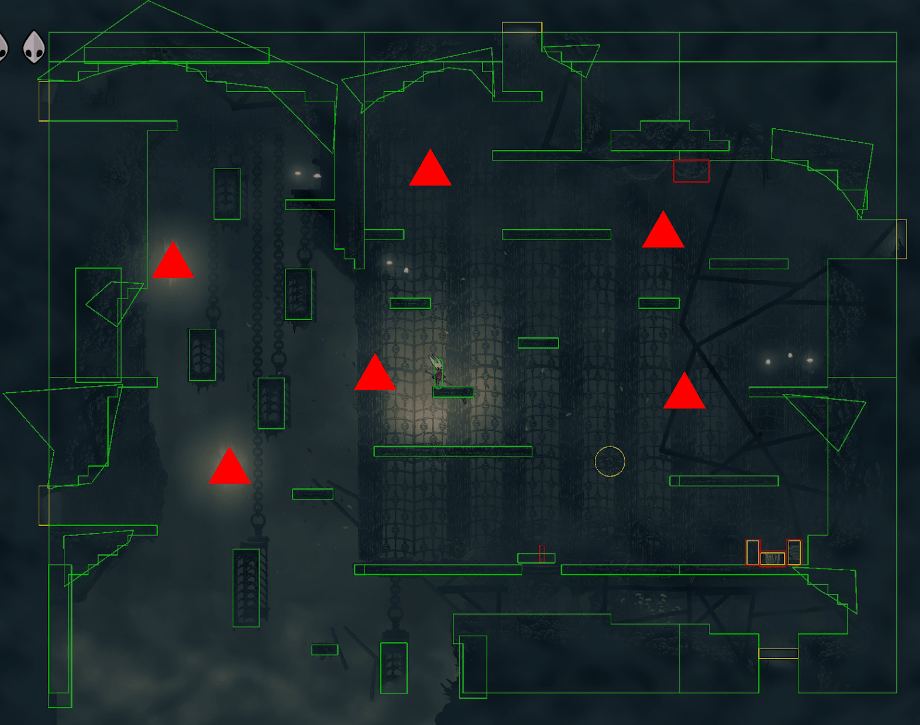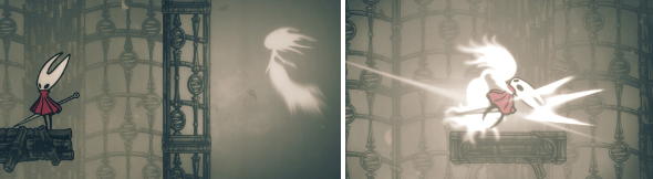 À medida que o número de espectros aumenta nas salas mais profundas do labirinto, evitá-los fica difícil. Assim, se um espectro iniciar um ataque enquanto você se aproxima de um grupo de mariposas, geralmente é melhor enfrentá-lo: provoque o mergulho dele, salte por cima e contra-ataque. Normalmente, eles precisam de 6 golpes com a agulha para serem derrotados (com a Lança-de-Seda, isso fica bem mais rápido — dois ataques e um arremesso costumam bastar). Espectros renascem rapidamente, então é melhor derrotar o que estiver bloqueando seu caminho e imediatamente encontrar a solução da sala.