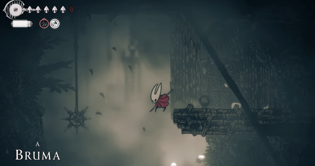 A Bruma é uma área em Silksong que funciona como uma zona de conexão entre o Caminho dos pecadores ou o Bilibrejo e a subzona do Orgão Exaustor, permitindo que o jogador acesse a Citadela (e o Ato 2) sem completar a missão de abrir o grande portgão do Ato 1. Essa é uma área de quebra-cabeça/labirinto onde, ao entrar, o jogador é colocado em uma de 8 salas, cada uma com várias saídas. Cada saída leva a uma das outras 7 salas possíveis de forma aleatória, com uma saída marcada como “correta”. O jogador precisa acertar 7 saídas corretas no total (tecnicamente 6; ver: A pontuação) para completar o labirinto e alcançar o Orgão Exaustor — momento no qual o labirinto desaparece. Para identificar a saída correta, o jogador deve tocar o Agulino para grupos de mariposas, que o guiarão até a saída certa; pegar uma saída errada zera o progresso do labirinto. Por causa dessa mecânica, ter o Agulino no inventário é um requisito fixo para avançar na Bluma. Após a primeira sala do labirinto, Espectros hostis passam a aparecer para atacar o jogador e impedir a fuga. Cada sala tem várias armadilhas, e a maioria inclui um poço sem fundo que causa Voidout¹; cair nele ou morrer de qualquer forma também reinicia o labirinto.